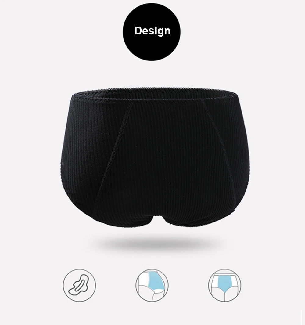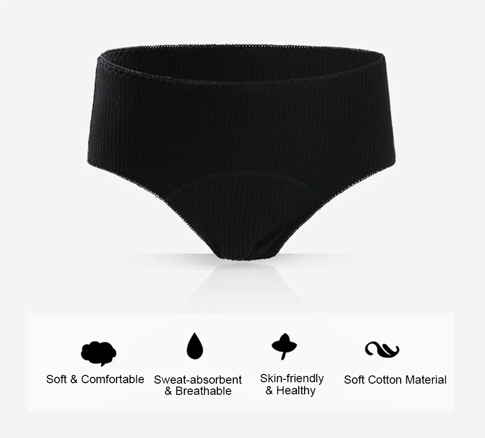 1. Трусики со средней талией-защита спереди и сзади2. Сильно впитывает = 2 тампоны3. Дышащие и мягкие, очень удобные4. Черный внутренний слой = незаметная защита