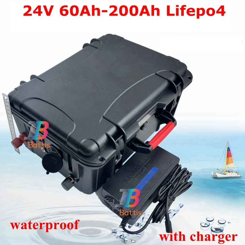 Battis водонепроницаемый Lifepo4 24V 60Ah 80Ah 100Ah 120Ah 150Ah 200Ah литиевый аккумулятор для 80lbs-160lbs двигателя троллинга + 10A зарядное устройство