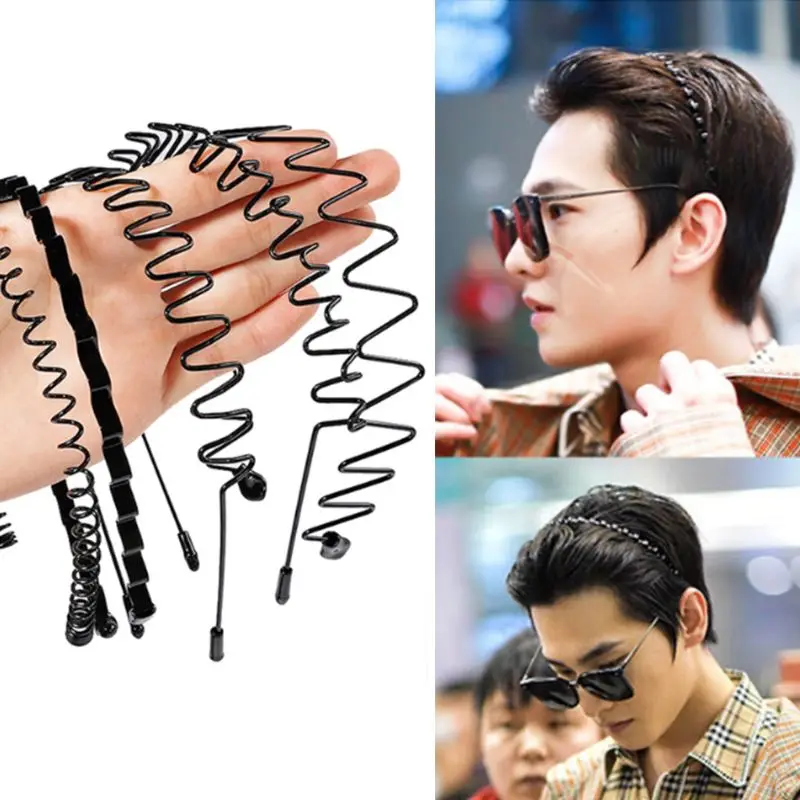 5 шт., мужские и женские черные разноцветные металлические пластиковые обручи для волос, весенние волнистые спиральные повязки, простые спортивные головные уборы для мытья лица