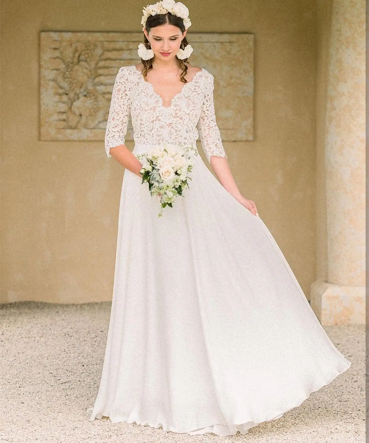 Шифоновое свадебное платье А-силуэта в стиле Бохо