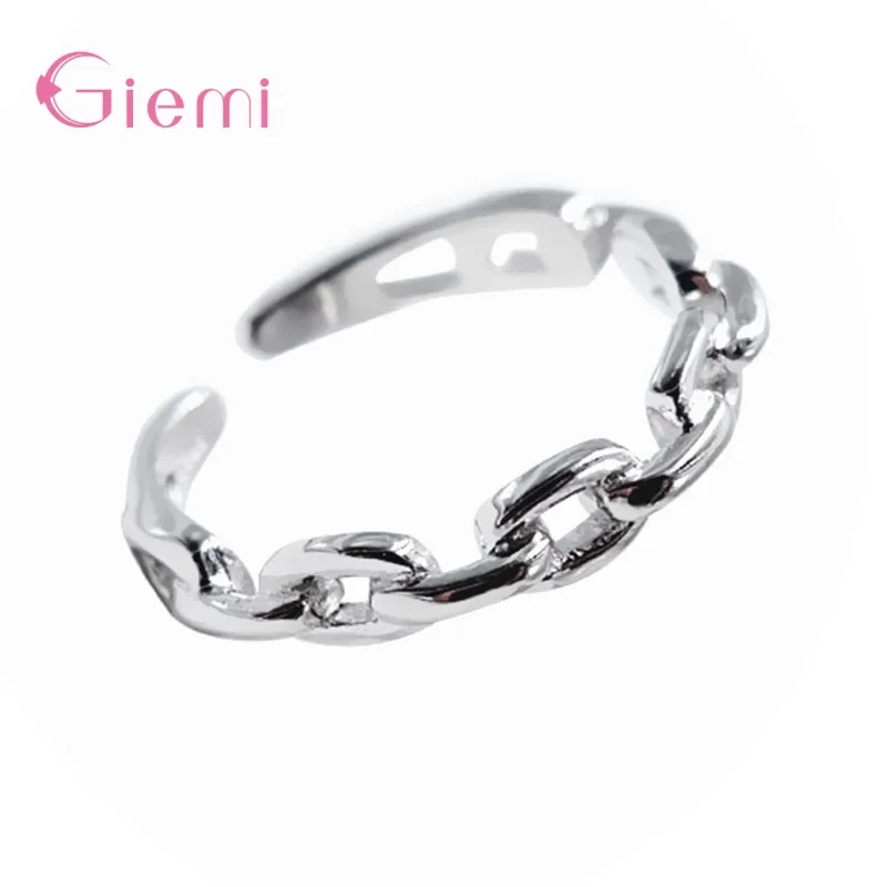 Блестящие подлинные кольца из стерлингового серебра 925 пробы с широкими звеньями, регулируемые кольца на палец для женщин, свадебные ювелирные изделия для помолвки