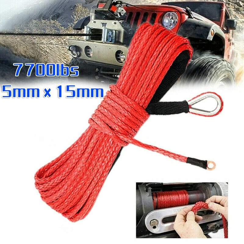 Трос для лебедки длиной 15 м, синтетический буксировочный трос с об...