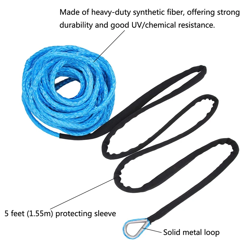 3/16 дюймов x 50 дюймов 7700 фунтов синтетический трос лебедки с защитным рукавом для ATV UTV