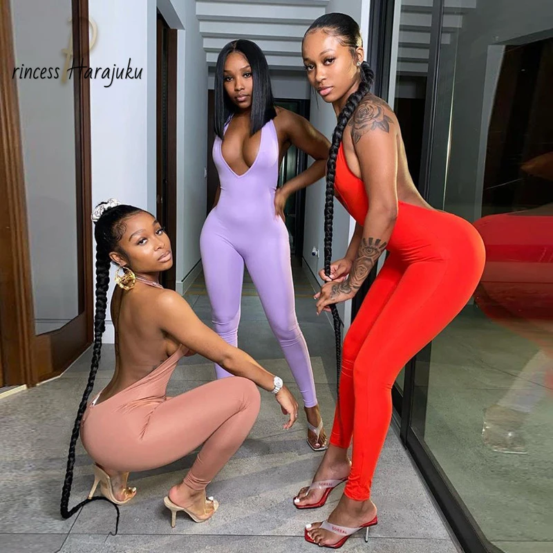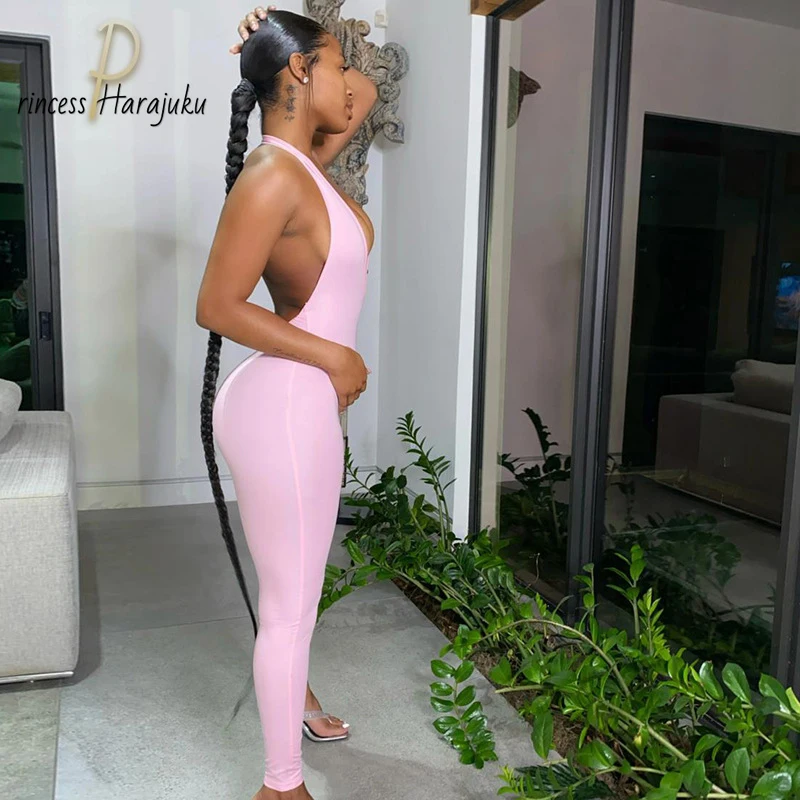 Женский Длинный комбинезон, однотонный Облегающий комбинезон с откр...