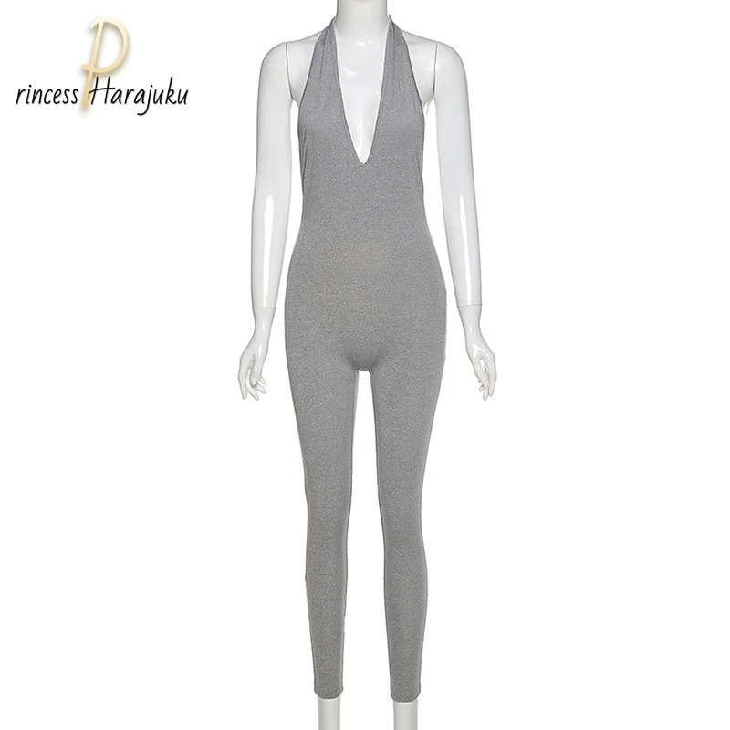 Сексуальный женский комбинезон с глубоким V-образным вырезом и откр...