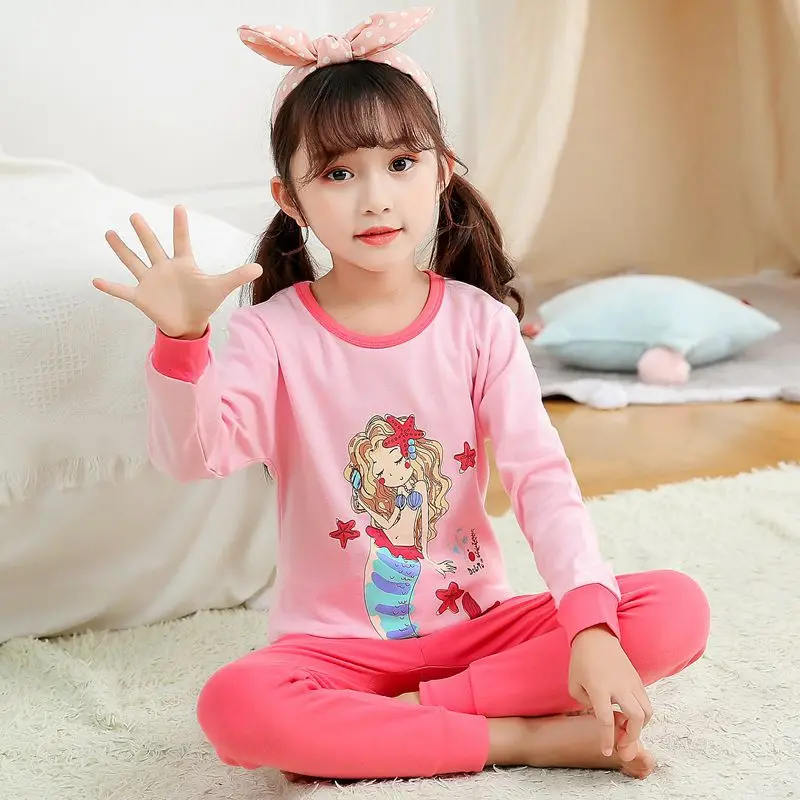 Новая осенняя одежда для мальчиков пижамы для девочек с длинным рук...