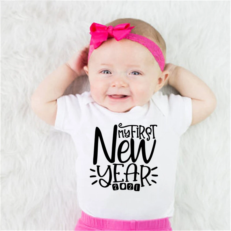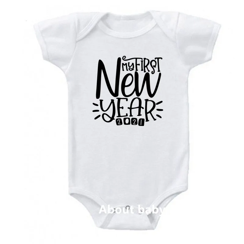 Мой первый новый год 2021 детское боди для новорожденных девочек мальчиков с коротким рукавом хлопковые комбинезоны повседневная одежда Новогодние детские комбинезоны