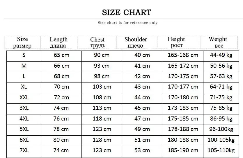 1. Это китайский размер, обычно на 2-3 размера меньше, чем Европейский/американский размер. Если вы носите Европейский/американский размер M, вы можете выбрать наш Размер XL или XXL. 2. Как измеряется вручную; Погрешности могут составлять 1-3 см разницу допускается (1 см = 0,39 дюймов). 3. Разные компьютеры могут отображать разные цвета, даже если они одного цвета. Пожалуйста, учитывайте разумную разницу в цвете. 4. Как правило, мы можем отправить ваш заказ в течение 3 дней после оплаты, если нет, пожалуйста, свяжитесь с нами, чтобы проверить проблему.