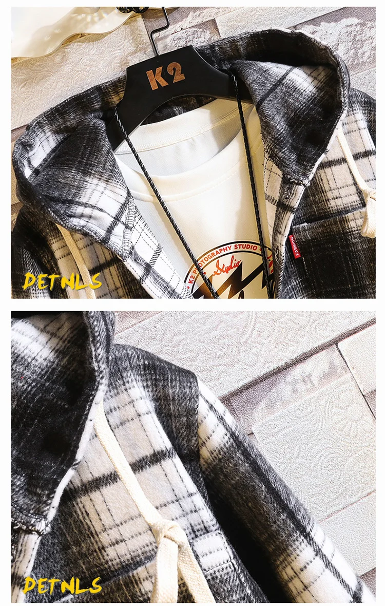 Повседневная брендовая рубашка в клетку с капюшоном, мужские флисовые красные рубашки с длинным рукавом, новинка 2021, весна-осень, большие размеры