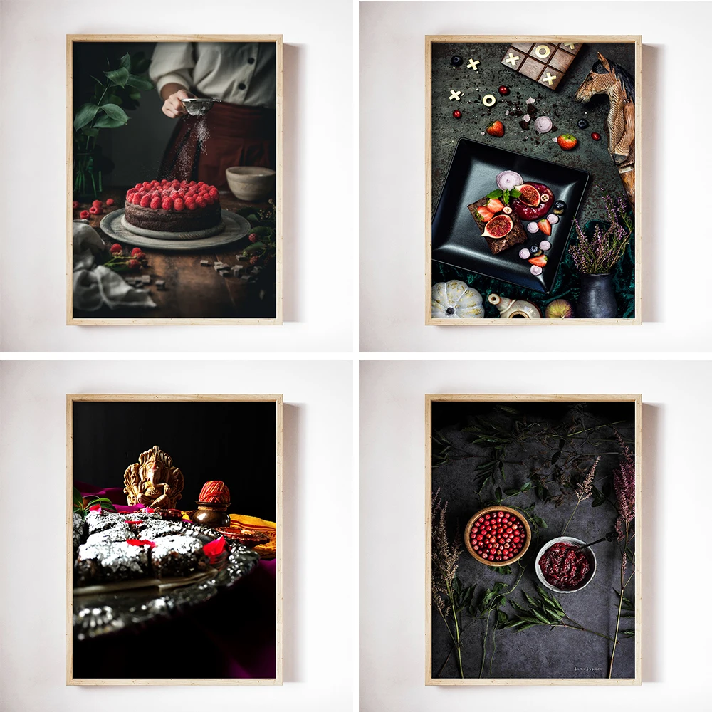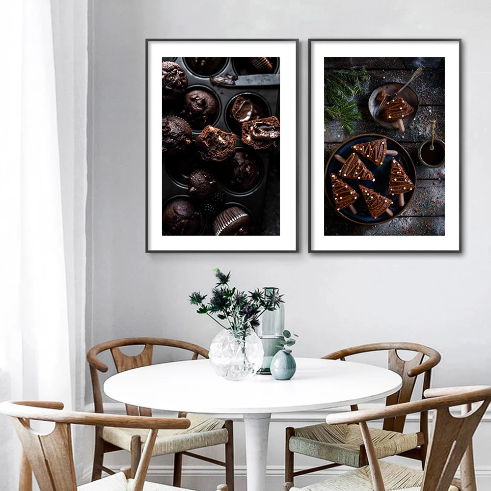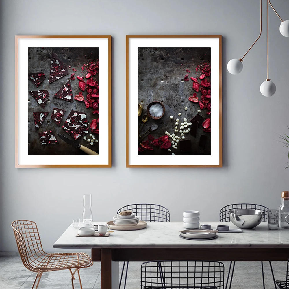 Декор для ресторана, холст, постер, гранат, шоколад, фрукты, домашние кухонные постеры, принты, жилая стена, искусство, еды, Модульная картина