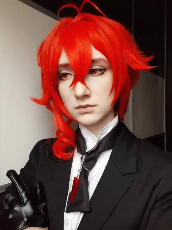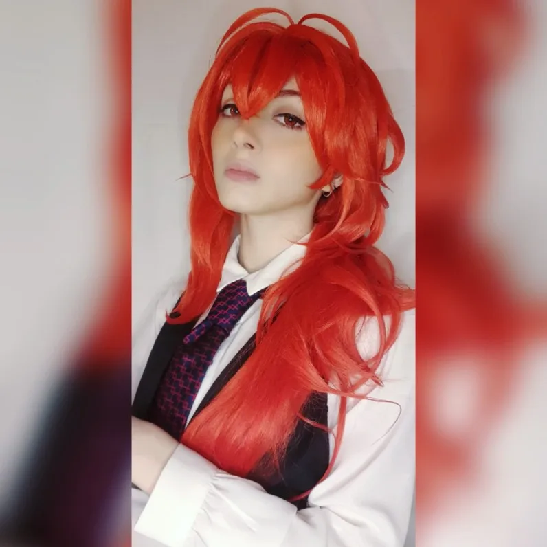 Парик для косплея Genshin Impact, в наличии, рыжие волосы, длинные вьющиеся, термостойкие, для взрослых, мужчин, женщин, мужчин, ролевых игр на Хэллоуин