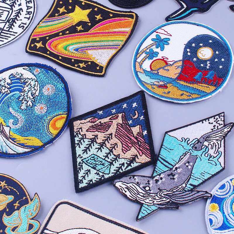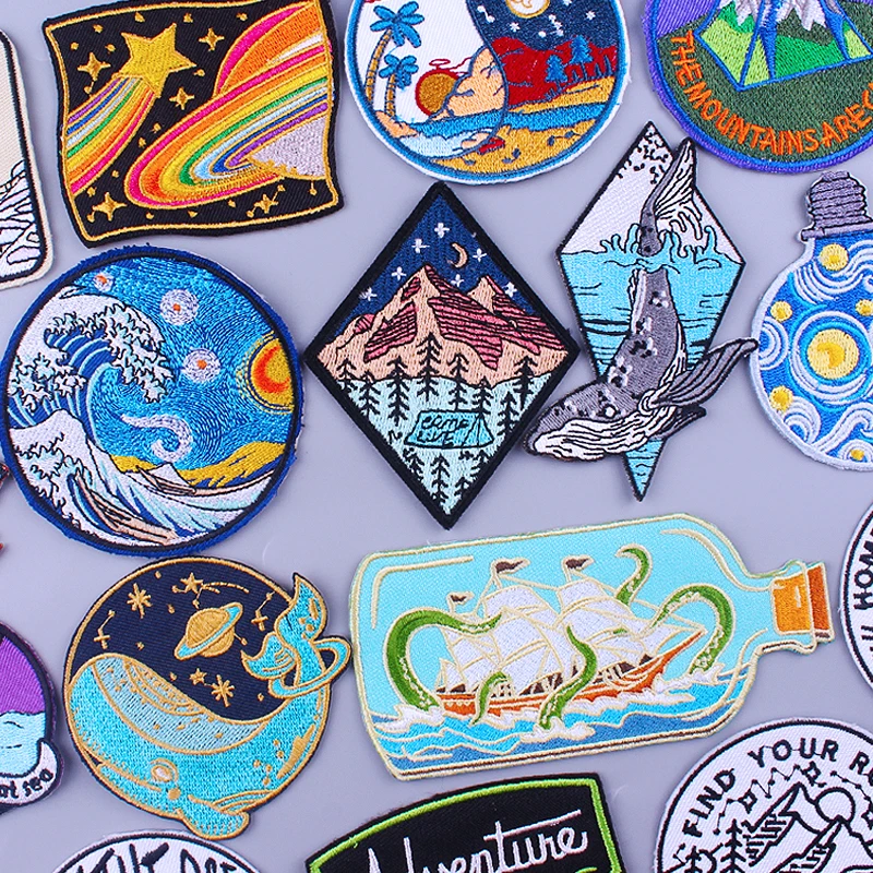 Нашивка с аппликацией в виде горного космоса, нашивки с вышивкой, нашивки для одежды, натуральные волнистые приключения, лодки