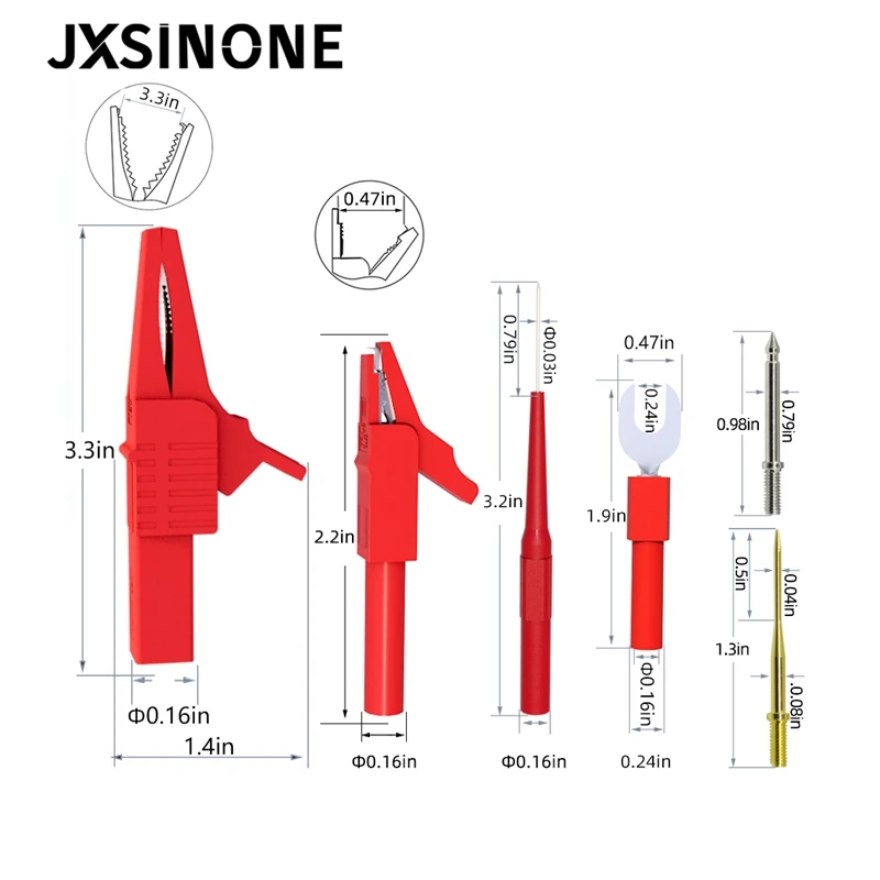 Сменная спица в комплекте: 4 шт. цвета: золотистый, острые иглы 4 шт. Стандартный иглы 2 шт. защитные головные уборы 2 шт. разъемы с вилками типа «банан», Тесты приводит 2 шт. мультиметр ручки 2 шт. маленькие зажимы типа "крокодил", комплект из 2 предметов, большие зажимы типа Крокодил 2 шт. IC Тесты Крючка 2 шт. U-Тип адаптеры для сим-карт 2 шт гибкие тестовые зонды 2 шт пирсинг тестовые зажимы 2 шт высоковольтный зонд