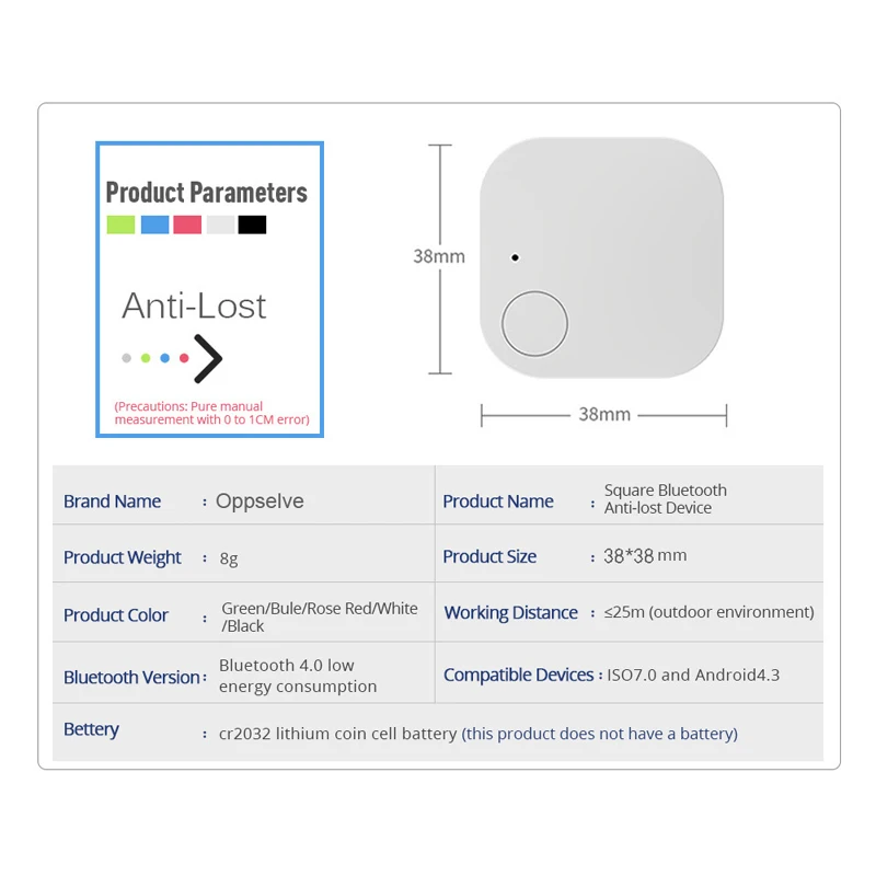 Совместимые устройства: * Система iOS * Система Android со смартфоном bluetooth 4,0 (версия Android 4,3 и версия выше) * Версия Bluetooth: Bluetooth 4,0 с низким энергопотреблением * Совместимый Телефон: для iPhone SE 6/6 Plus/6s, для iPad Mini, для iTouch 5, для iPad 3/4, для iPad Air и системы Andriod со смартфоном Bluetooth 4,0 (версия Android 4,3 и версия выше) * Рабочее расстояние: около 75 футов (включая барьер) Подходит для: кошелька, машины, ребенка, домашних животных, сумок, чемоданов и других принадлежностей Батарея: литиевая батарея CR2032 Время ожидания: 6 месяцев Соединяет до 10 устройств iTag Название приложения: iSearching (бесплатно) Язык приложения: английский Как использовать: Загрузите приложение iSearching (бесплатно), Откройте свой bluetooth и Подключитесь к трекеру, после чего вы сможете использовать его. Посылка 1 трекер Bluetooth 4,0 Примечание: Допускается погрешность в 1-2 см из-за ручного измерения. Цвета могут отличаться от представленных на дисплее. Надеемся на ваше понимание. Если у вас возникли проблемы, пожалуйста, свяжитесь с нами, прежде чем открывать спор или оставлять отрицательный отзыв, мы постараемся сделать все возможное, чтобы помочь вам, спасибо! Пожалуйста, убедитесь, что вы не против, прежде чем сделать заказ.