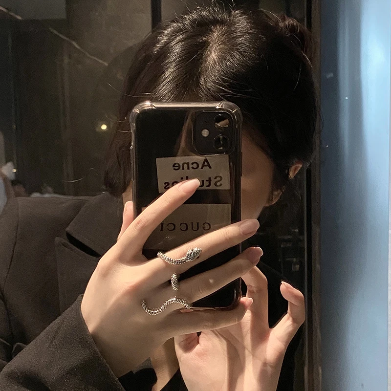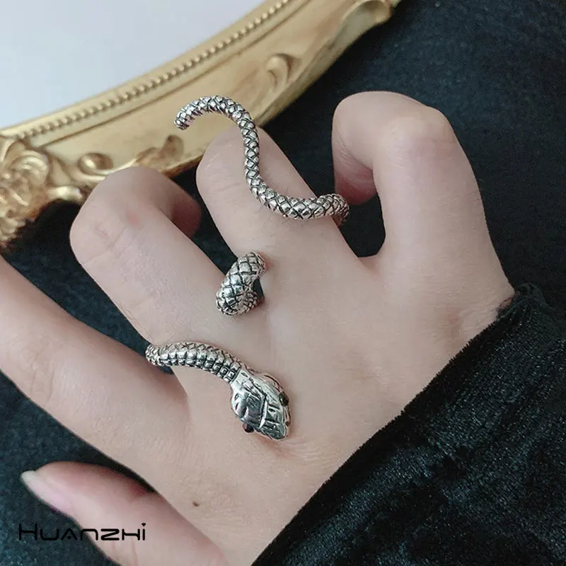 Кольцо женское HUANZHI, серебристого цвета, в стиле хип-хоп, с изгибом в виде змеи, винтажное, 2020