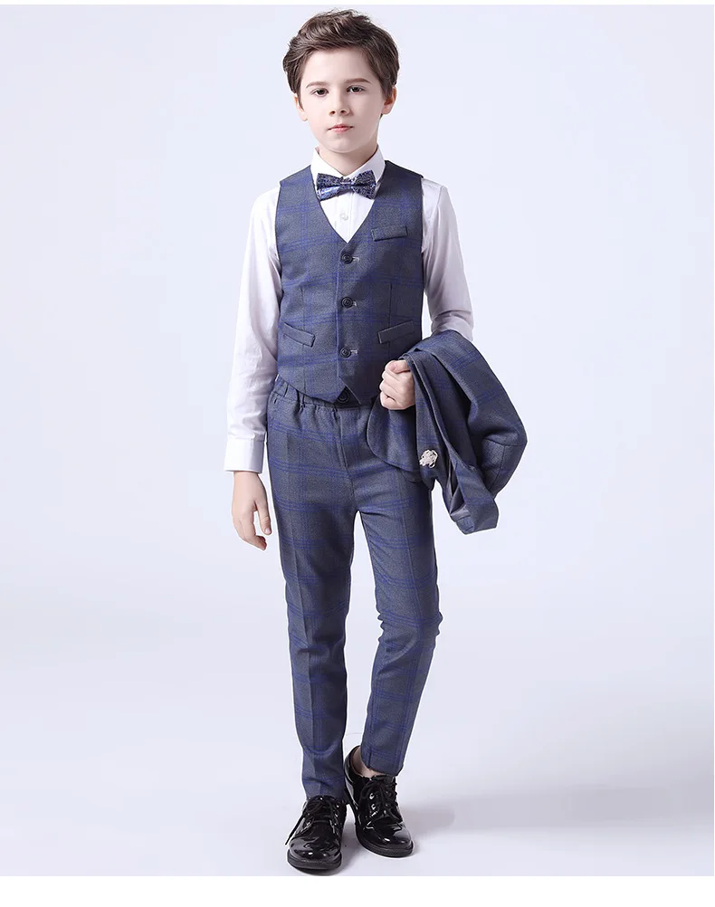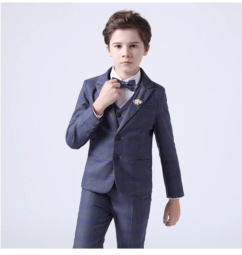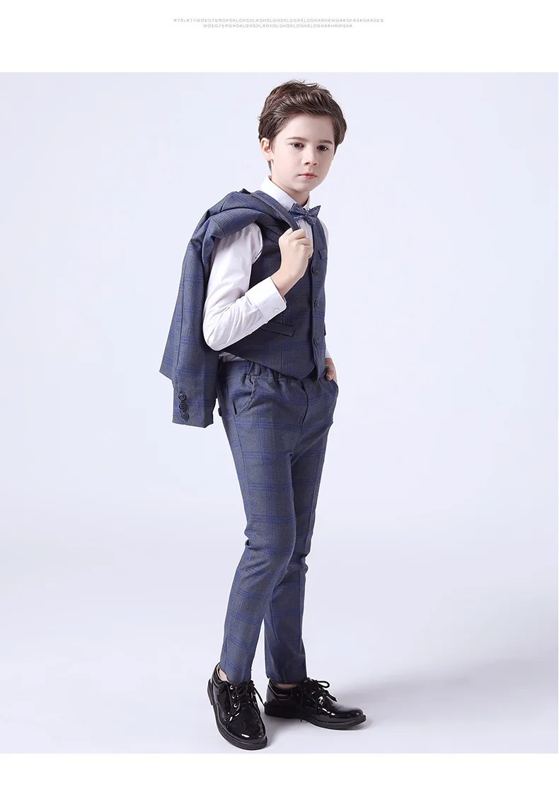 Строгий костюм с платьем для мальчиков Детский демисезонный костюм с цветочным принтом для свадебной вечеринки детский Блейзер, жилет, штаны, комплект одежды