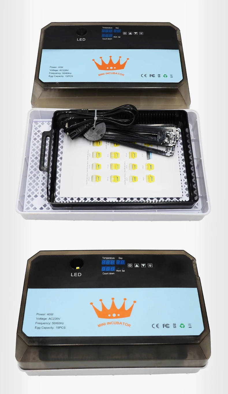Дешевый небольшой инкубатор 15 яиц цыпленок Брудер с русской маской наклейка для продажи