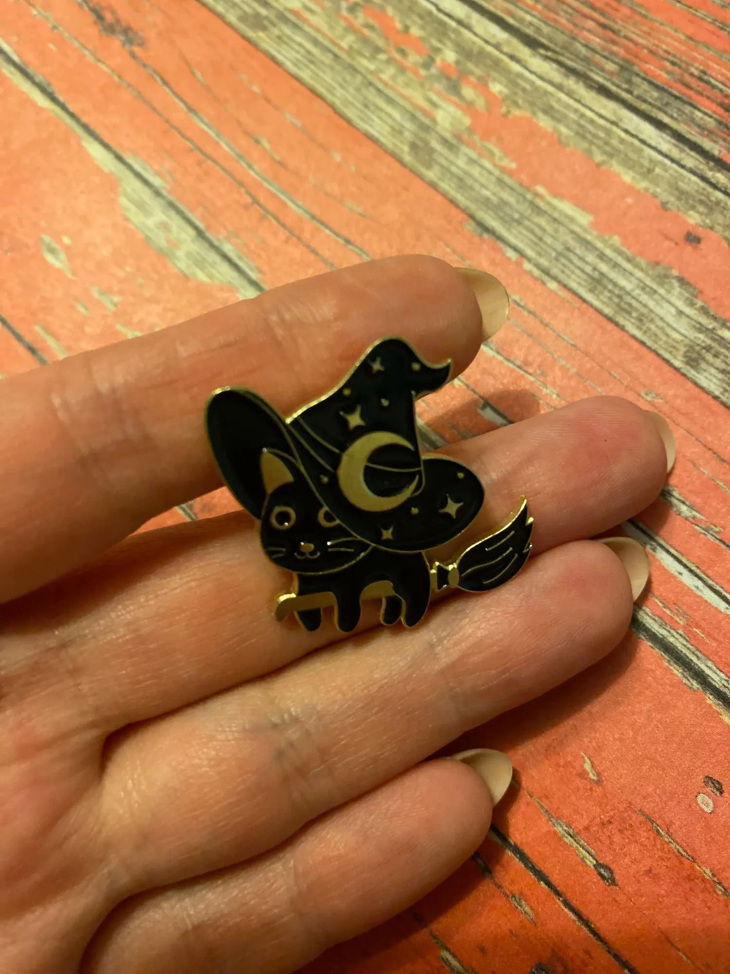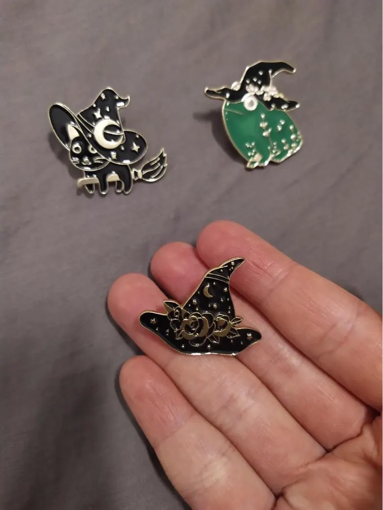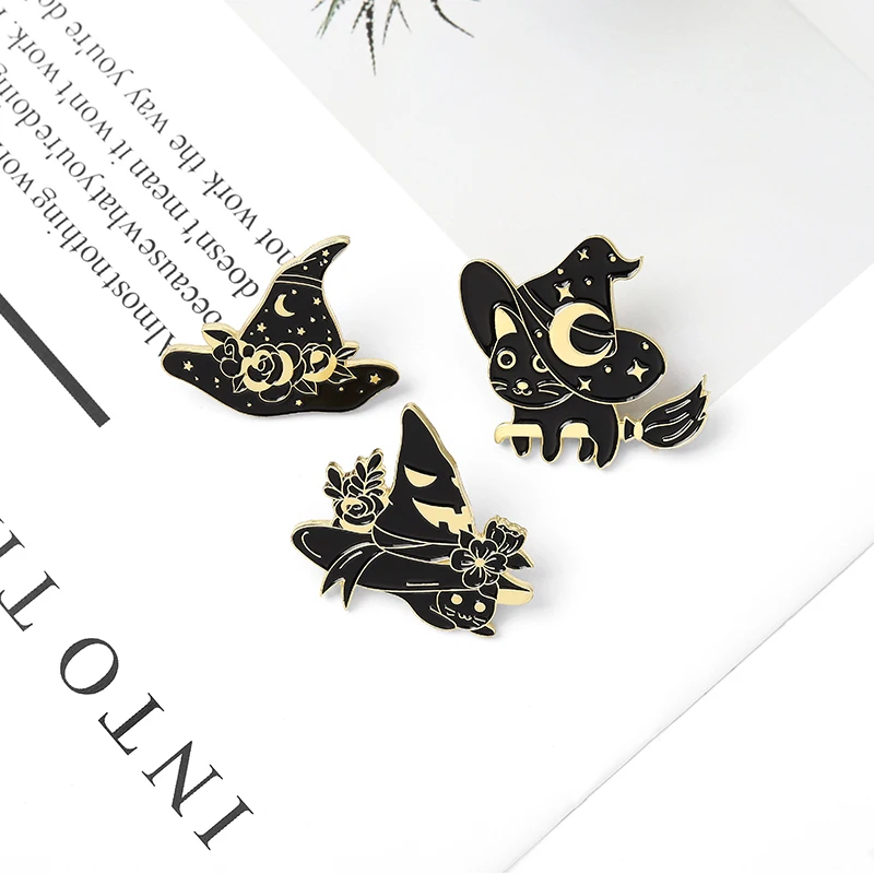 Значок на лацкан в готическом стиле, с изображением ведьмы, котов, звездного волшебника, брошь шляпа, для сумок, одежды, колдовские украшения