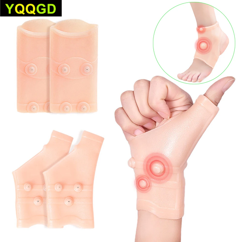 Компрессионный бандаж на лодыжку, 4 шт.компл., бандаж для запястья, водонепроницаемый магнитный силиконовый гелевый бандаж на запястье