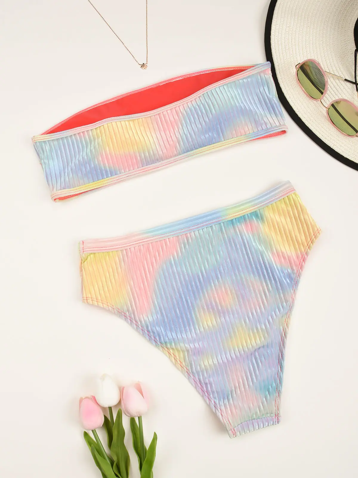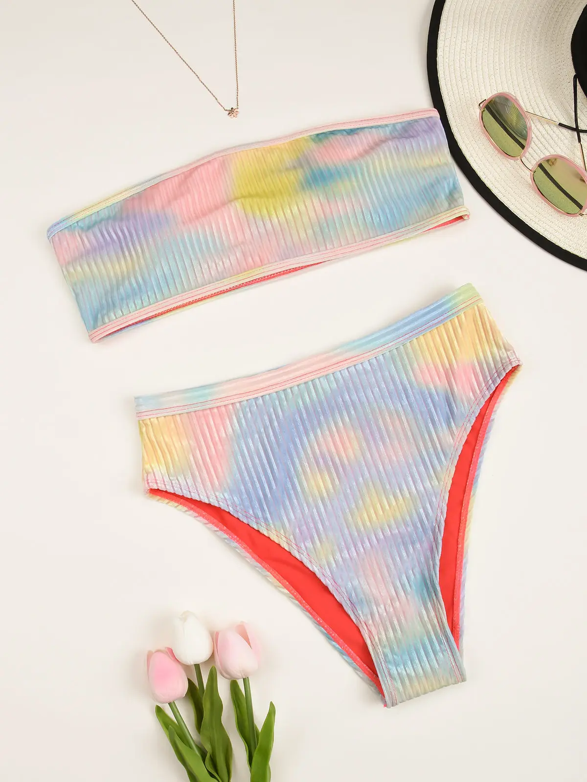 Бикини с принтом тай-дай, сексуальный женский купальник, женский купальник, бандо, бразильский комплект бикини с высокой талией, бикини, купальный костюм, пляжная одежда, 2020