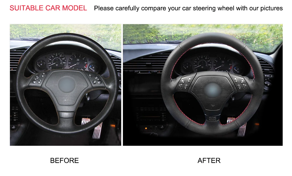 Искусственная кожа, черная, сшитая вручную, для BMW E36 E46 чехол рулевого колеса автомобиля-1998, Z3, E367, 2000, 1995, 1996, 1997-1999