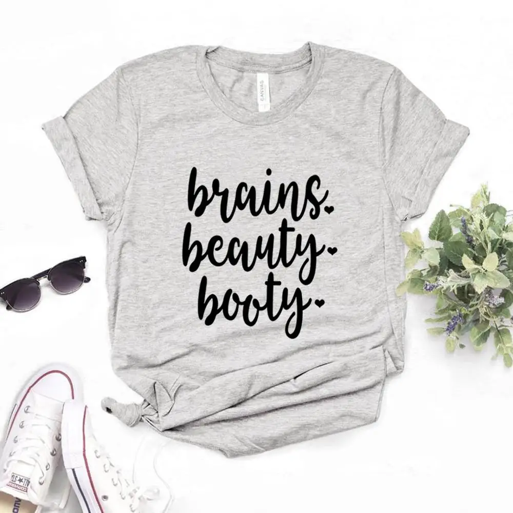 Женская хлопковая Футболка с принтом Мозги красоты, повседневная забавная футболка для девушек Yong, хипстерский FS-195