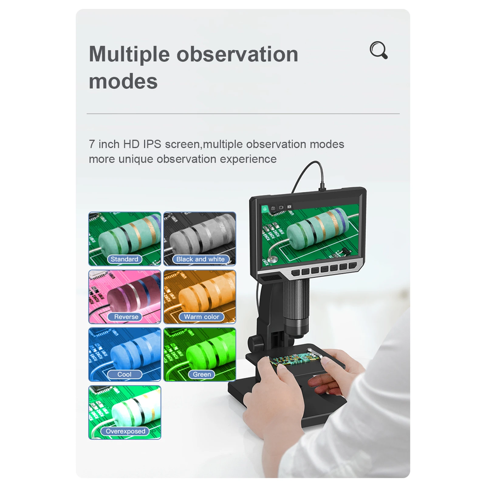 Этот Цифровые микроскопы имеет 8,5 дюймов ЖК-дисплей экран, и угол наклона микроскоп дисплей может быть отрегулировано с 10 Светодиодный свет, который может быть отрегулировано и обмен мгновенными сообщениями возраста понятно, поддерживает карту памяти и 12 языков, который может быть широко использован в нашей повседневной жизни. Приходите и попробуйте.Особенности:Продукт имеет 8,5 дюймов ЖК-дисплей экран, который является более крупные и отображает четкую.Угол дисплея микроскопа может быть отрегулирован, чтобы облегчить наблюдение под разными углами.Металлический кронштейн может быть отрегулирован спереди и сзади, что может принести 3D визуальные эффекты и большее рабочее пространство.Металлическая черная Базовая пластина, с зажимом, может зафиксировать элемент наблюдения.2 светодиодный свет добавились на основание кронштейна, с 8 светодиодный свет собран в для того, чтобы сделать im возраста острее.Поддерживает Запись карты памяти и фотографирование, что более удобно в использовании.Поддержка 12 языков: упрощенный китайский, традиционный китайский, английский, японский, французский, немецкий, корейский, португальский, испанский, русский, тайский, вьетнамский.Широко используются: повторная пара электронных продуктов, таких как мобильные телефоны и компьютеры, анти-que идентификация, печатные материалы, текстиль, ювелирные изделия, Заводские производственные линии, повторные пары, наблюдение растений и сект и т. Д.Есть два типа на выбор. Первый тип не имеет аккумулятора и должен быть подключен к линии передачи данных; Второй тип имеет встроенный литиевый аккумулятор. Вы можете выбрать тот, который вы хотите.Характеристики:Материал: АБС + металлТип: тип 1, Тип 2 (опционально)Датчик Im-age: 2 мегапикселя с датчиком высокой четкостиРазрешение видео: FHD 1920x1080 30 кадров в секунду, 1080P 1440x1080 30 кадров в секунду, 720P 1280x720 30 кадров в секундуФормат видео: AVIУвеличение: 5X-1200XРазрешение фото: макс. 12 м (4032x3024)Формат фото: JPGДиапазон фокусировки: 10 мм-160 ммЧастота кадров: Макс 30f/sХранение: карта micro-SD, до 32 г (не входит в комплект)Поддержка ПК: нетИсточник питания: USB постоянный ток 5 ВБатарея: 1 * литиевая батарея, 2200 мАч (тип 1 не входит в комплект, тип 2 в комплекте)Размер обзора защитного: 8,5 дюйм (ов)Разрешение экрана: 1280*800Размер стойки: 200*190*120 мм/7,9*7,5*4,7 дюймовРазмер посылка: 295*260*145 мм/11,6*10,2*5,7 дюймовПосылка Вес: 1650 г/3.6lbУпаковочный лист: (опционально)Тип 11 * микроскоп1 * подставка1 * USB кабель2 * зажим1 * Руководство пользователяИлиТип 21 * микроскоп1 * подставка1 * Аккумулятор1 * USB кабель2 * зажим1 * Руководство пользователя