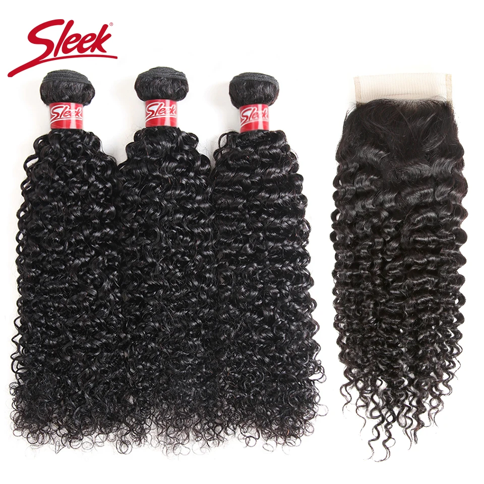 Sleek Малайзии человеческих волос кудрявый Вьющиеся пряди с закрытием вьющиеся человеческие волосы пряди с закрытием 3 пряди вьющиеся пряди с закрытием
