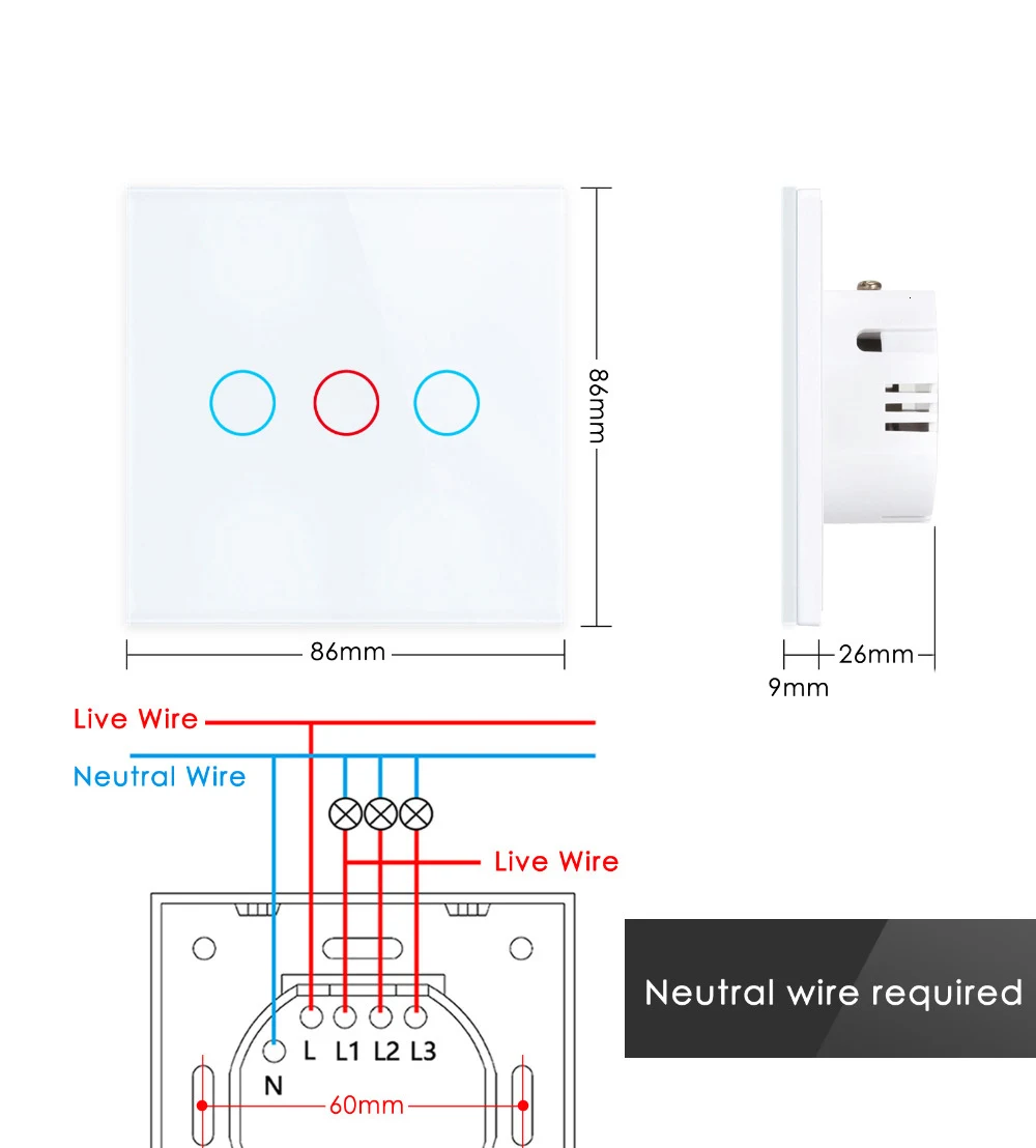 Cheap materials, the connectors came with the screw head destroyed and some screws were damaged and I couldn't screw up the contacts. The multicontrol options is barely configurable. I had to set up the multicontrol for my own with automations in smart life as anothers switches I have.