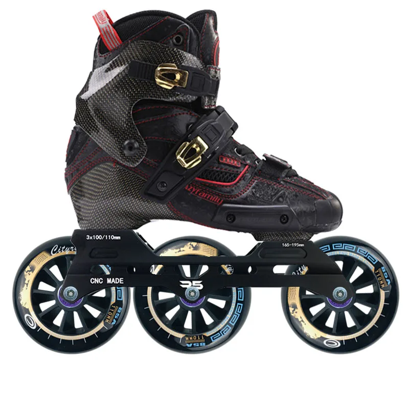 Оригинальные скоростные роликовые коньки CRAZY Carbon Fiber с колесами 3x110 мм 85A для профессиональных детей, для взрослых, для катания на коньках