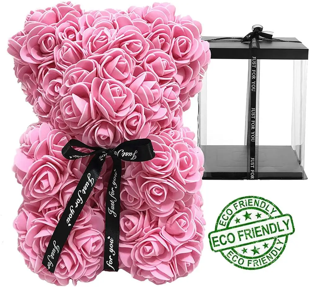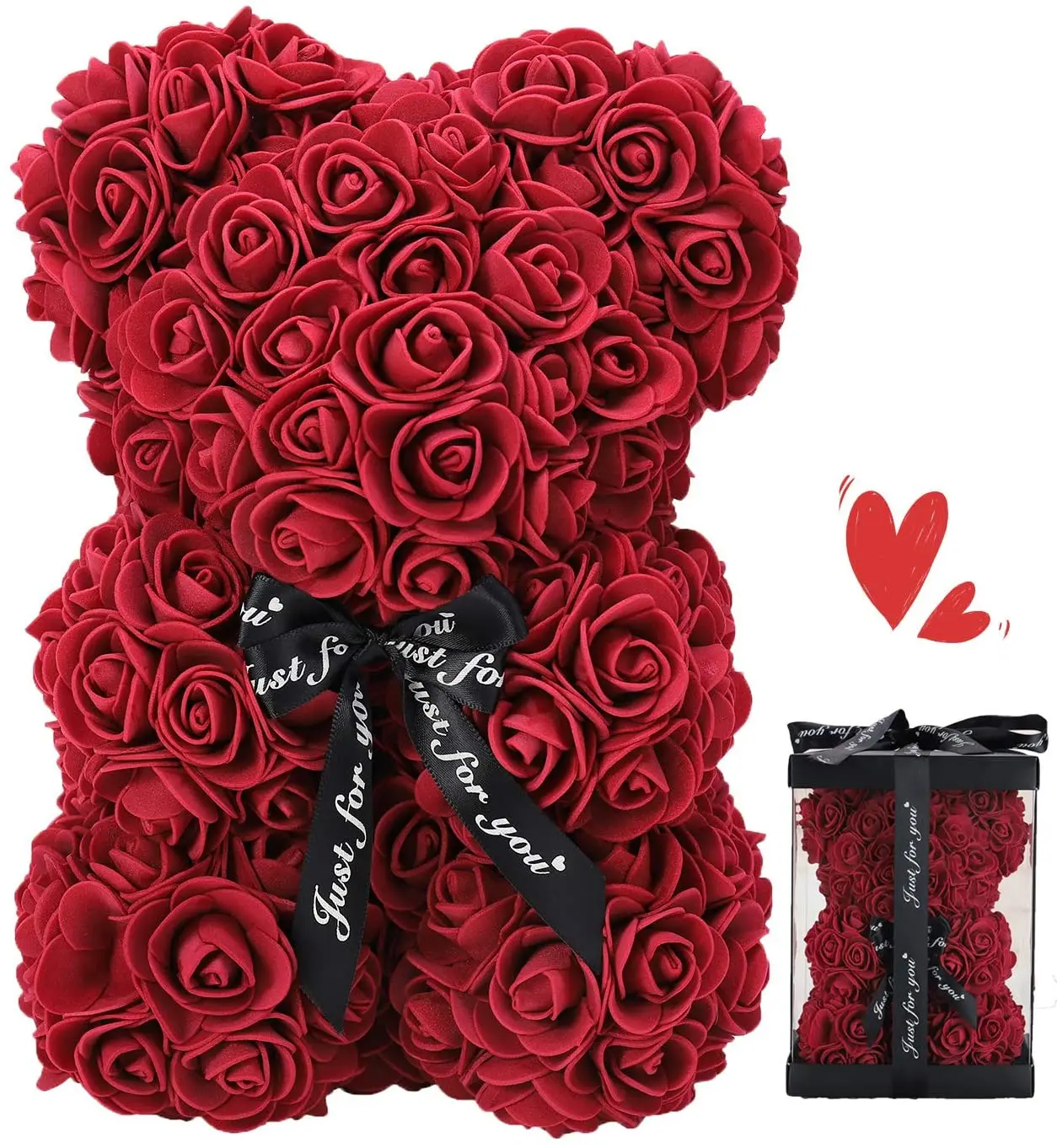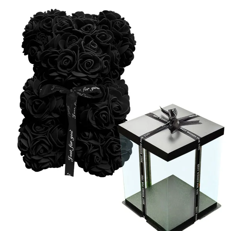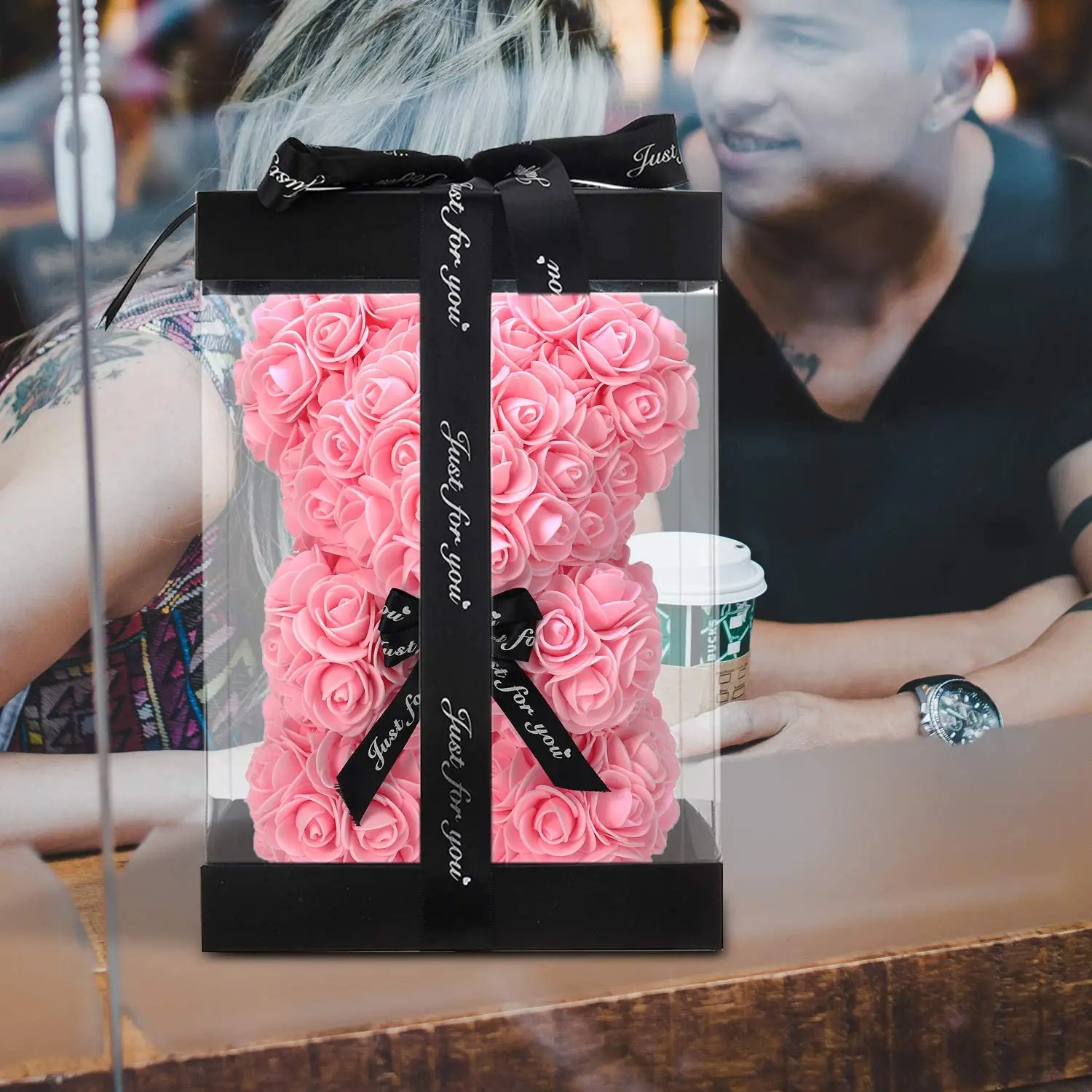 DIY 25 см Мишка Тедди роза с коробкой Искусственные из ПЭ цветок медведь Роза День святого Валентина для девушки женщины жена мать подарок на день