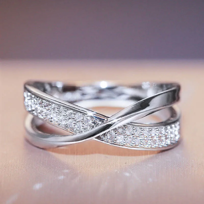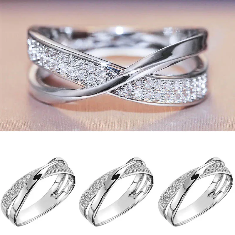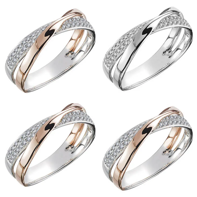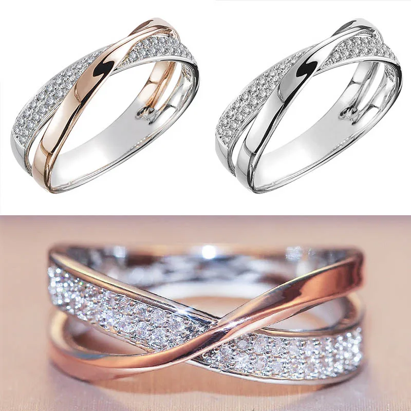 Двухцветные Новые простые женские кольца из циркония в форме х, ювелирные изделия, модное кольцо с крестом для свадебной вечеринки