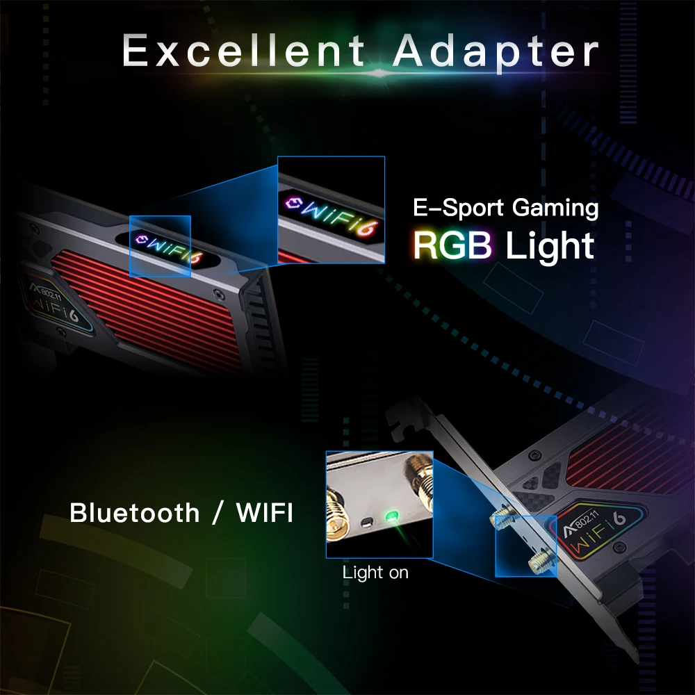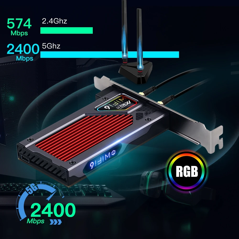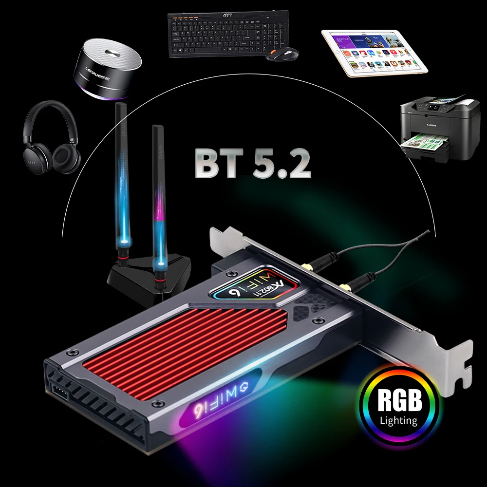 Fenvi 3000 Мбитс Wi-Fi 6 PCI-E Bluetooth 5,1, Двухдиапазонная игровая беспроводная карта PCIe, адаптер RGB 2,4G 802.11AX Wi-Fi Intel AX200 Wlan