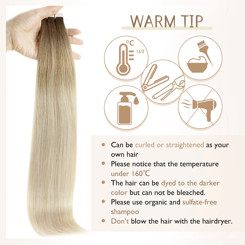 Волосы для наращивания, натуральные, светлые, 100% неповрежденные, с клеевым покрытием