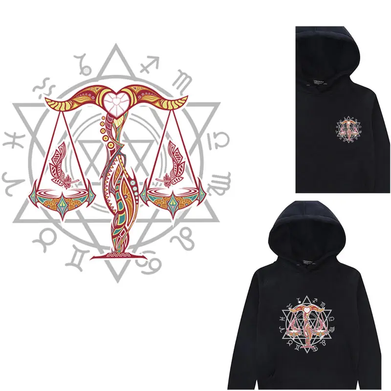 Термотрансферные нашивки с двенадцатью созвездиями, весы, термонаклейки для одежды сделай сам, термонаклейки на одежду, аппликация, Декор