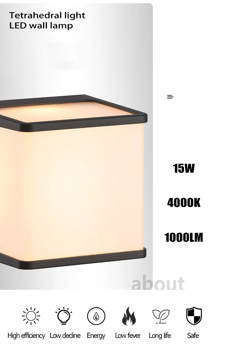 Наружный светильник, квадратный наружный настенный светильник из алюминия, наружный настенный светильник IP54, водонепроницаемая лампа для дома 1000Lm 15W 4000K
