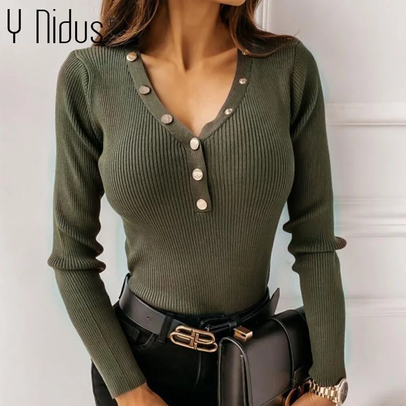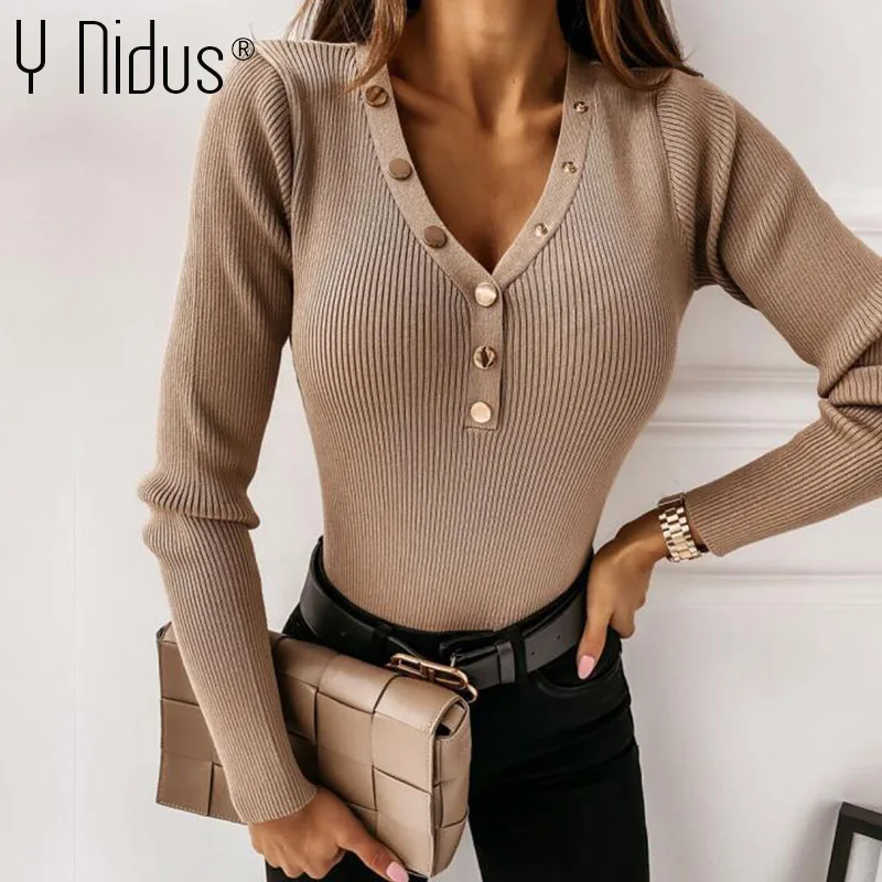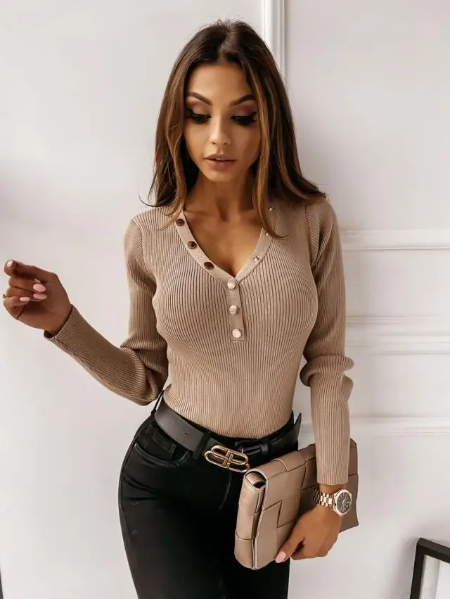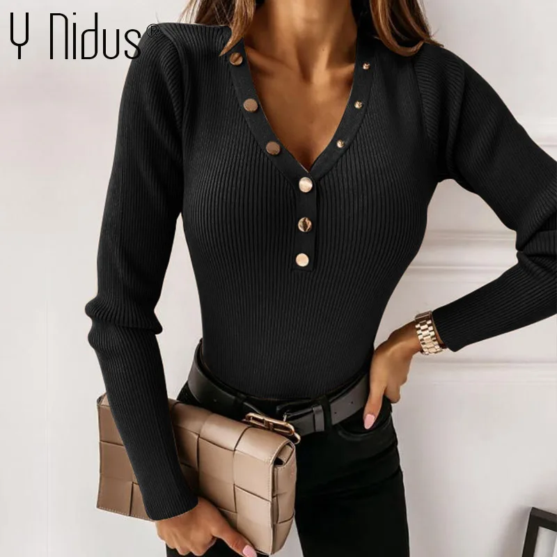 Женский свитер на пуговицах, осенне-зимний вязаный Топ с длинным рукавом, сексуальный женский свитер с глубоким v-образным вырезом, женский черный пуловер, джемперы 2020