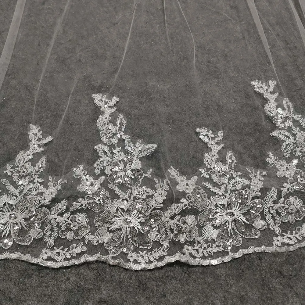 Блестящая кружевная Длинная свадебная вуаль с блестками, 3 метра, белая, слоновая кость, свадебная вуаль, свадебные головные уборы, фата для невесты