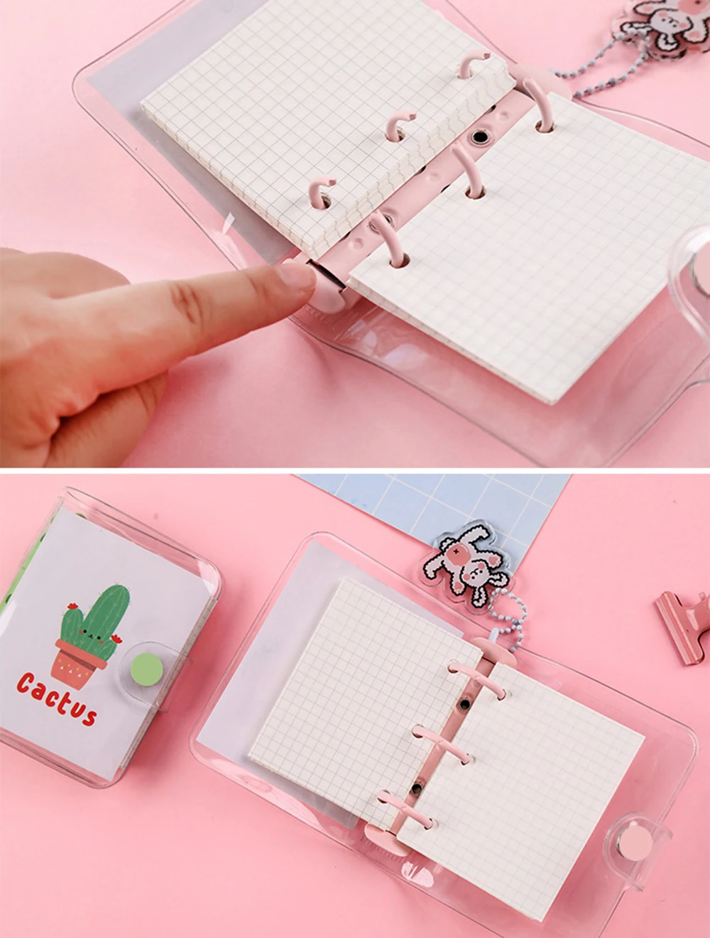 Прозрачный 3 кольцо мини блокнот с отрывными листами студентеский портативный ручной книга записная книжка с кольцевым механизмом для бизнес планирования школьные принадлежности канцелярские товары