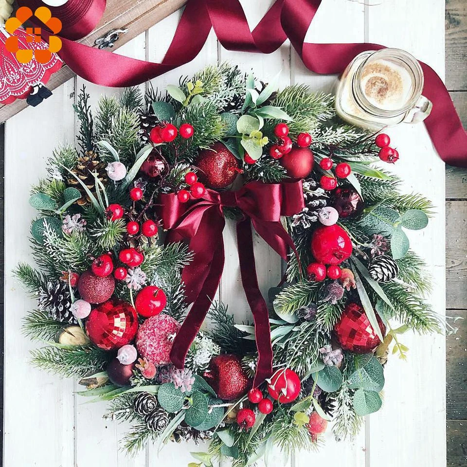 1 упаковка, натуральный венок из ротанга, сосновые ветви, рождественские ягоды и сосновые шишки для DIY, Рождественский венок, ручная работа, украшение для двери дома