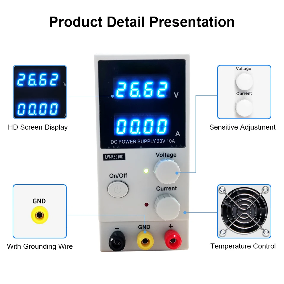 Выключатель питания постоянного тока 30V10A Регулируемый импульсный источник питания SMPS Регулируемый K3010D мини 110 В 220 В 10A DC одноканальный для ремонта телефона ноутбука