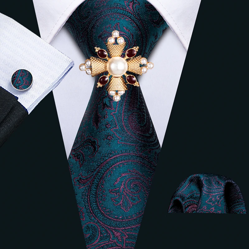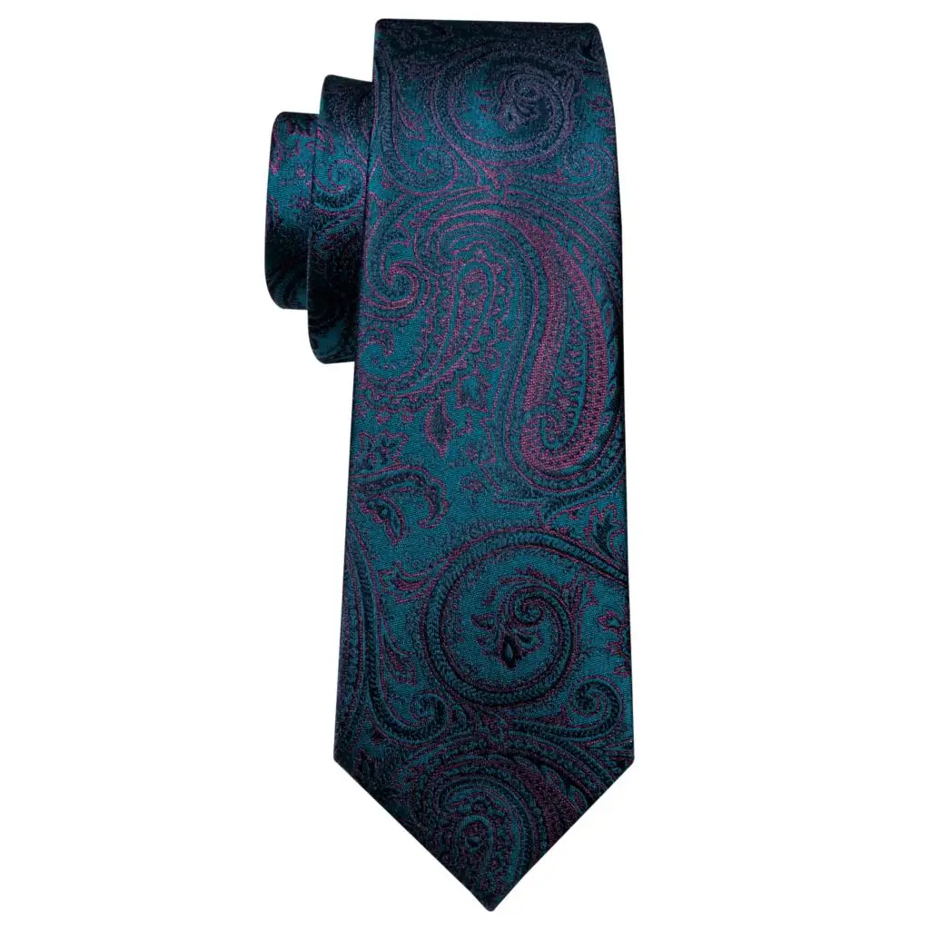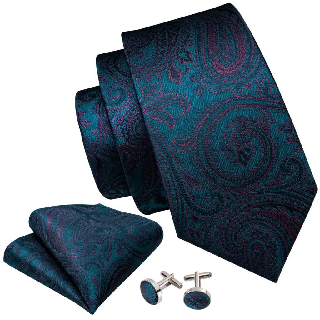 Teal Мужской Галстук Пейсли галстук Gravat носовой платок Набор шелковых галстуков Темно-Синие Новые Вечерние бизнес для мужчин Мода