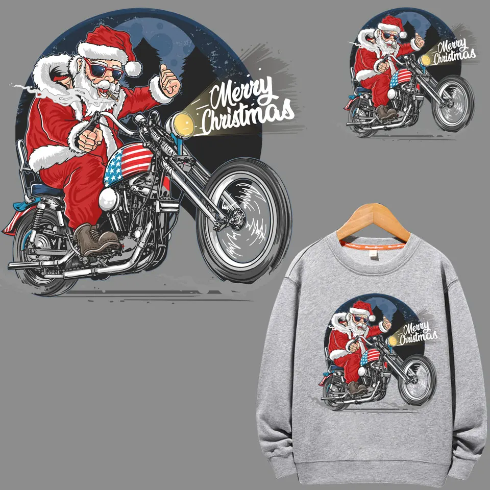 Переводные рождественские нашивки с помощью утюга, искусственные наклейки, олень, снеговик, мотоцикл, Санта-Клаус, печатная аппликация, Декор