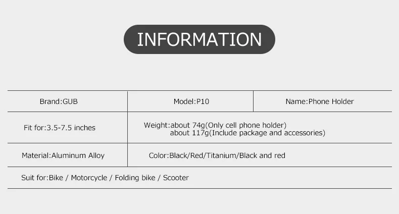 GUB P10 P20 Алюминий для велосипеда для мобильного телефона держате...