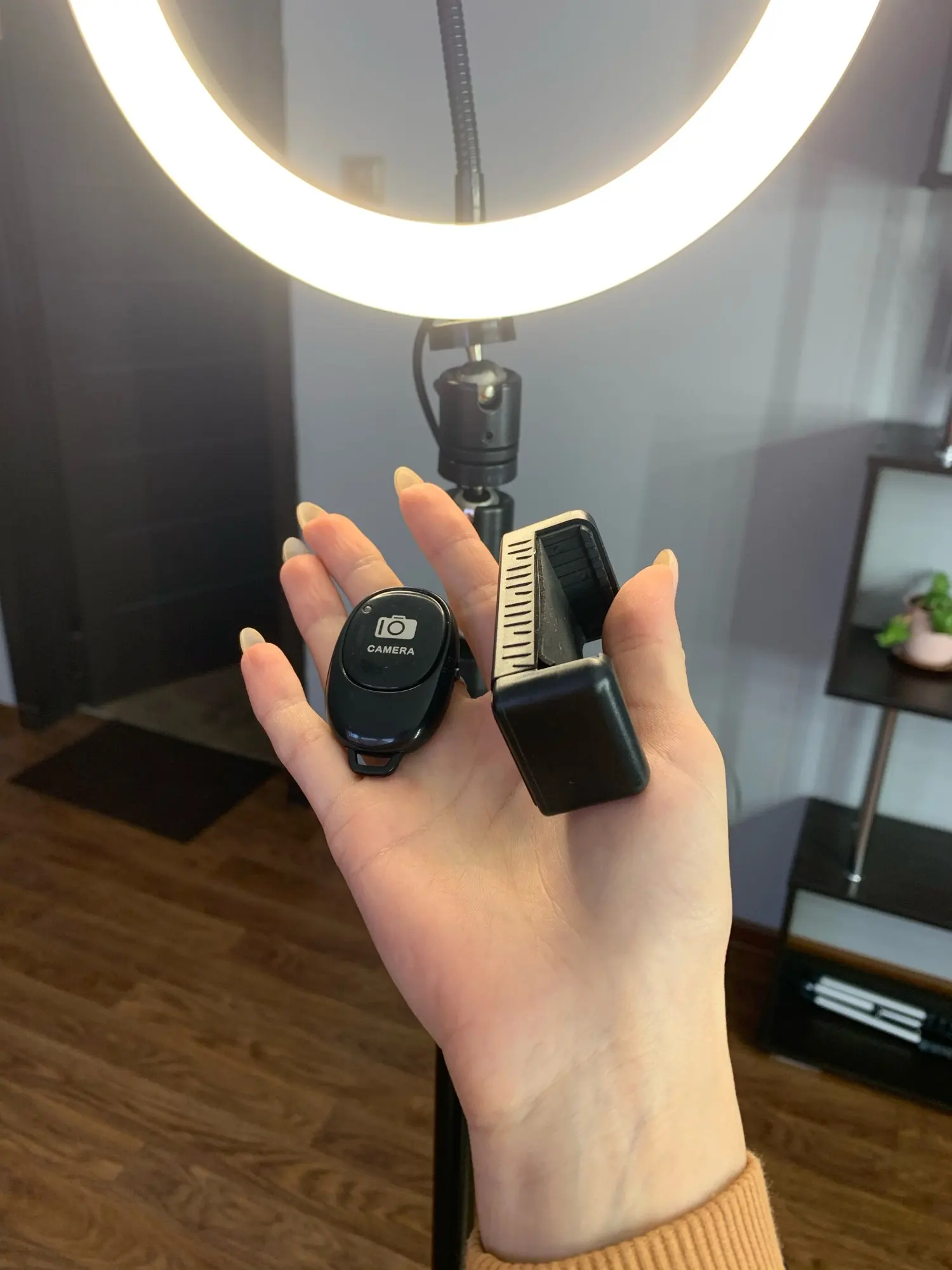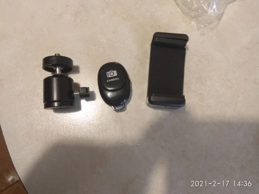 Получено через 10 дней, товар качественный, пульт рабочий, пришел с батарейкой, подключил через блютуз (ab shutter3),honor 20s поместился нормально