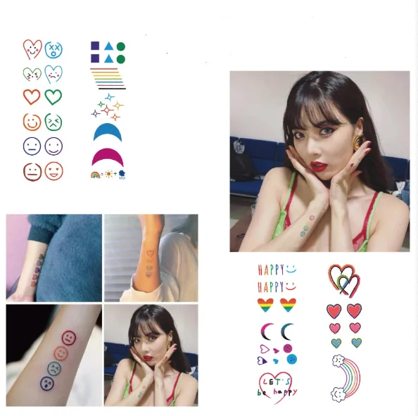 Ins Горячие красочные женские временные тату 30 шт Мультяшные боди-арт водонепроницаемые поддельные тату наклейки улыбка луна Радуга тату