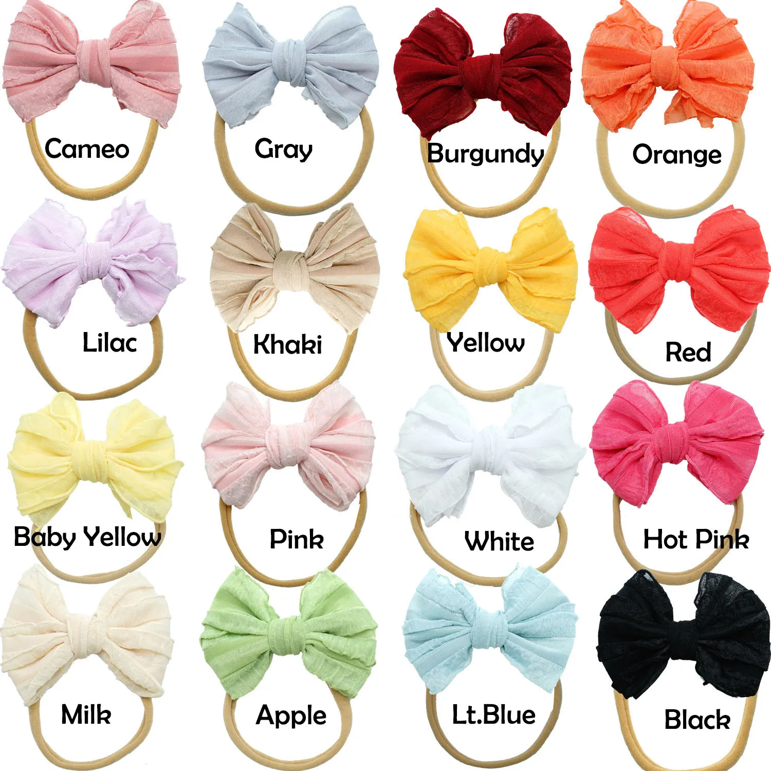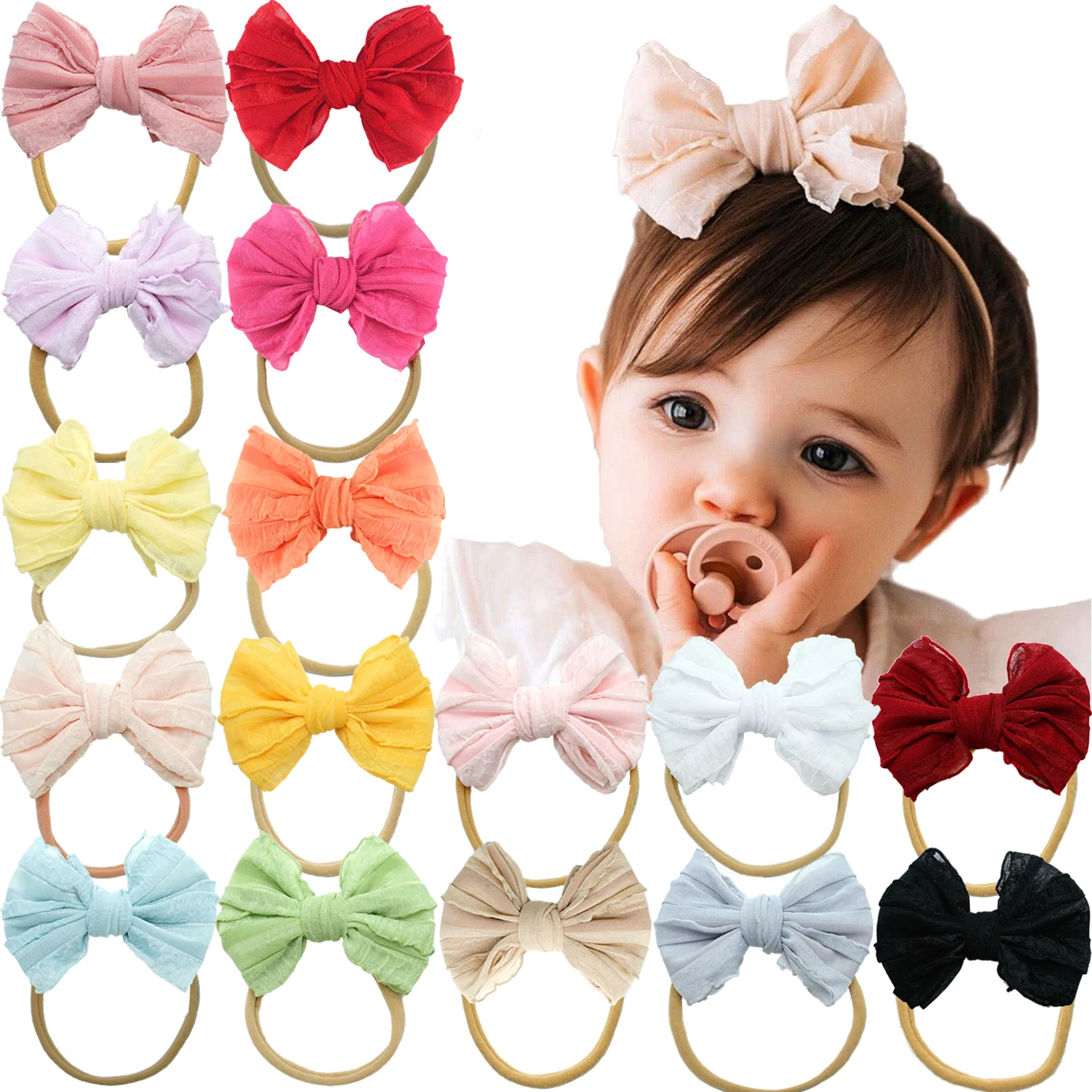 Повязка на голову для девочек, 16 цветов, с 4-дюймовым бантом, мягкая нейлоновая повязка на голову, аксессуары для фотосъемки новорожденных