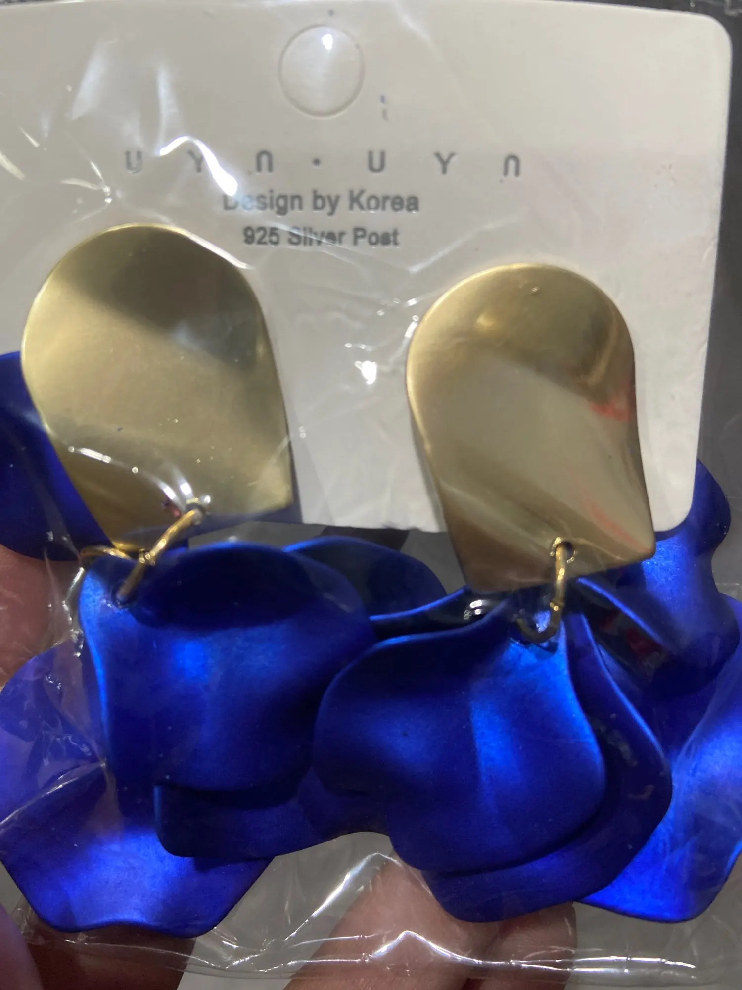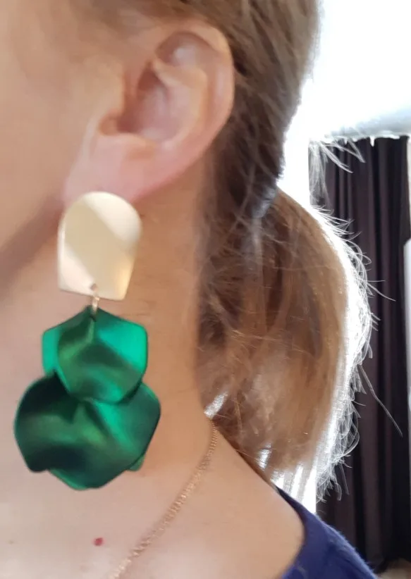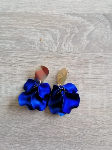 Очень красивые серьги. Сами синие лепестки на ощупь как бархат. Качество хорошее.