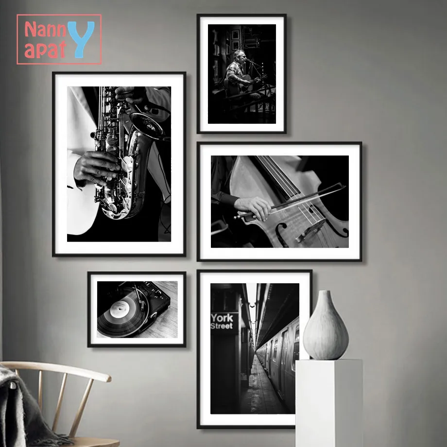 Картина на холсте винтажная Нью-Йорк бар певица Виолончель запись с...