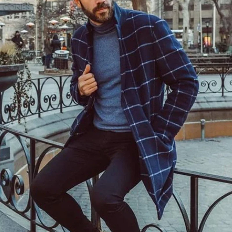 Пальто мужское шерстяное в Корейском стиле, теплая шерстяная верхняя одежда, длинное черно-белое клетчатое пальто, размера плюс 3XL, зима